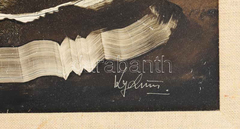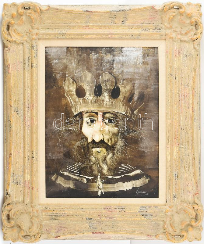 Leírás: Azonosítatlan jelzéssel: Öreg király. Olaj, farost. Jelzett, keretben 40x30 cm