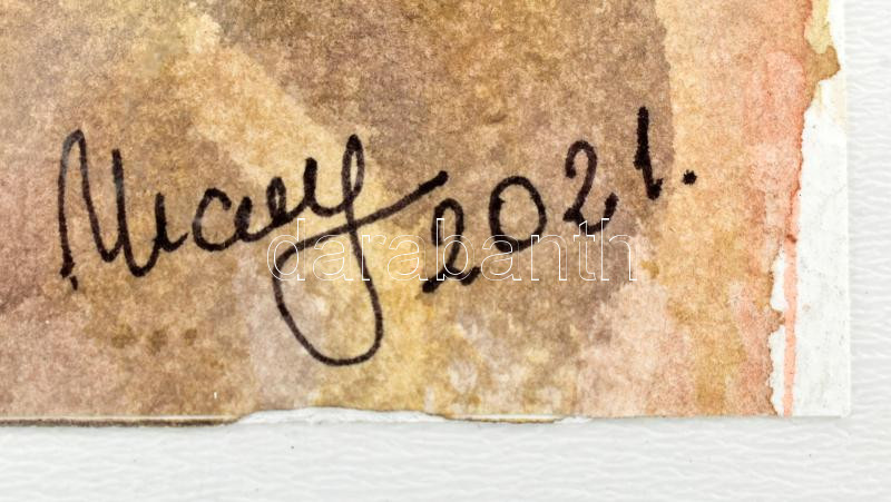 Leírás: Mezősné Bednárik Mária: Bajor Imre portréja. Akvarell, papír. Jelzett, üvegezett keretben, 20x15 cm
