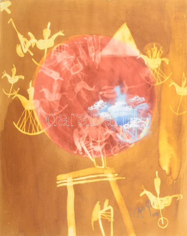 Leírás: Szalay Pál (1953-2015): Absztrakt kompozíció. Akvarell, pasztell, papír. Jelezve jobbra lent. 49,5x39,5 cm