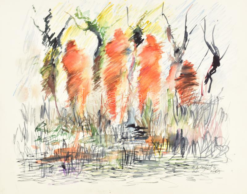 Leírás: Szalay Pál (1953-2015): Mártély, 1997. Akvarell, papír. Jelzett. 40x50 cm