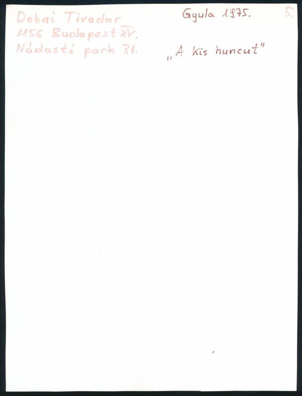 1975 Dobai Tivadar budapesti fotóművész feliratozott, vintage fotóművészeti alkotása (A kis huncut), ezüst zselatinos fotópapíron, a használatból eredő (esetleges) kisebb hibákkal, 24x18 cm22,8x17,2 cm