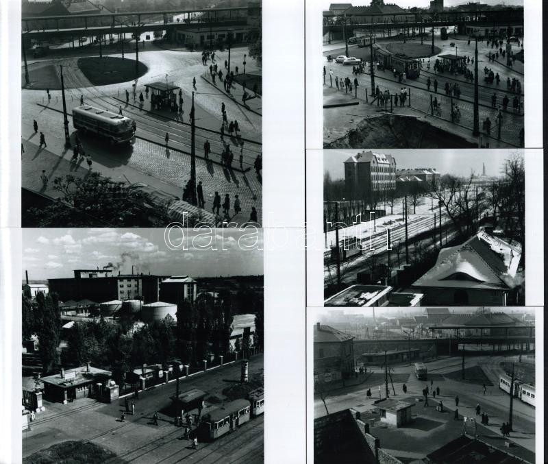 Leírás: Budapest, kőbányai villamosok és autóbuszok, eltérő időben készült felvételek, 5 db modern nagyítás, 15x21 cm és 10x15 cm
