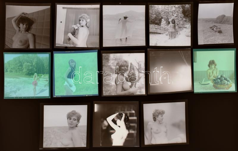 Leírás: Eltérő időben készült aktfelvételek, Menesdorfer Lajos (1941-2005) budapesti fotóművész hagyatékából, 13 db vintage NEGATÍV, 6x6 cm