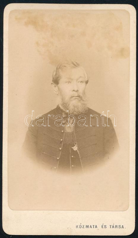 Leírás: cca 1863 Férfiportré, keményhátú fotó Kozmata és Társa Peti műterméből, foltos, 10,5×6,5 cm