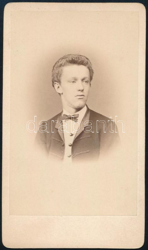 Leírás: cca 1865 Fiatalember portréja, keményhátú fotó Borsos és Doctor pesti műterméből, hátoldalán téves felirattal, 10,5×6,5 cm