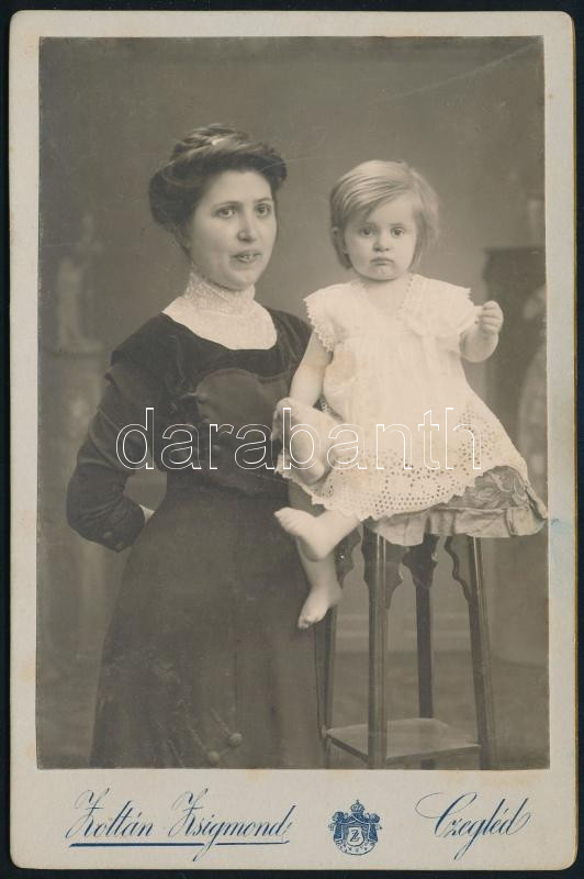 cca 1915 Cegléd, Zoltán Zsigmond fényképészeti műtermében készült, keményhátú vintage fotó, az I. vh. idején ilyen képeket küldtek a fronton harcoló apukáknak, 16x10,5 cm
