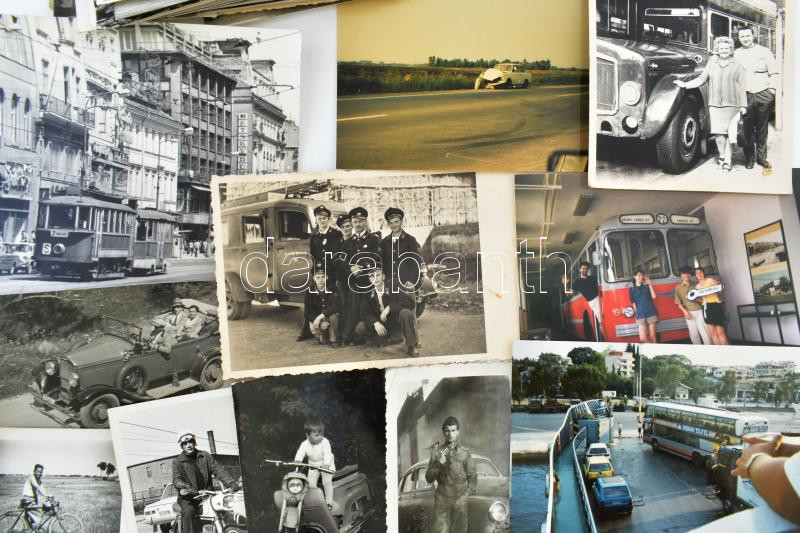 Leírás: cca 1920-2000 Vegyes autókat, járműveket ábrázoló fotók, kb. 50 db, vegyes méretben és állapotban