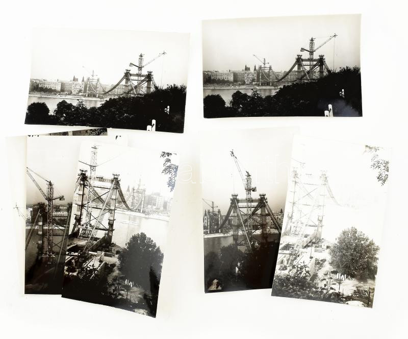 Leírás: cca 1963-64 Az épülő Erzsébet híd a budai oldalról, 7 db hátoldalán feliratozott, jelzés nélküli fotó, 9x14 cm