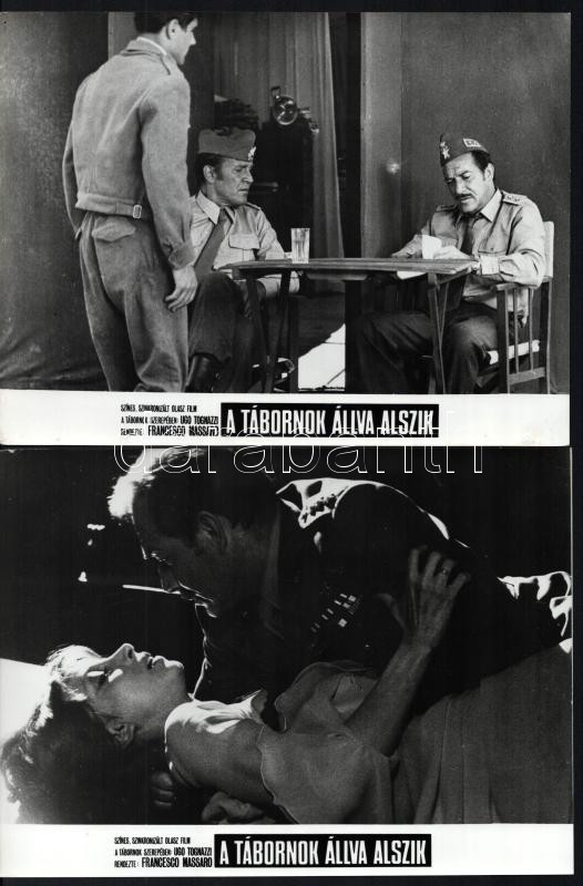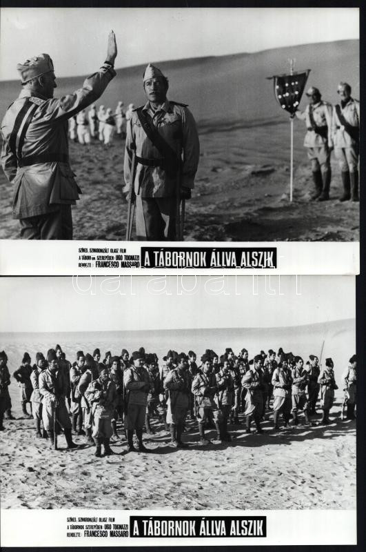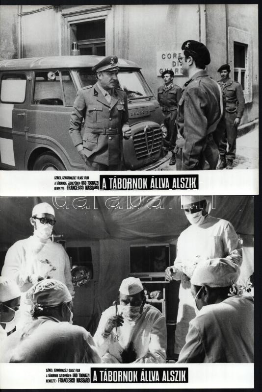 cca 1972 ,,A tábornok állva alszik" című olasz film jelenetei és szereplői, 15 db vintage produkciós filmfotó ezüst zselatinos fotópapíron, a használatból eredő (esetleges) kisebb hibákkal, 18x24 cm