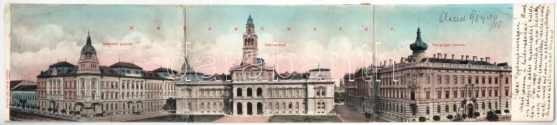 1904 Arad, Városház tér, Csanádi palota, Városháza, Pénzügyi palota. 3... https://www.darabanth.com/hu/451-Gyorsarveres/451.0/Kepeslapok/Erdely~2000005/1904-Arad-Varoshaz-ter-Csanadi-palota-Varoshaza-Penzugyi-palota-3-reszes-kihajthato-p~II2796553
