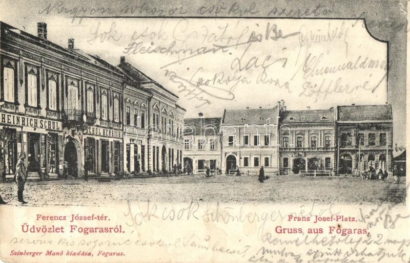 1905 Fogaras, Fagaras; Ferenc József tér, Heinrich Schul üzlete. Kiadj... https://www.darabanth.com/hu/451-Gyorsarveres/451.0/Kepeslapok/Erdely~2000005/1905-Fogaras-Fagaras-Ferenc-Jozsef-ter-Heinrich-Schul-uzlete-Kiadja-Szinberger-Mano-square~II1906013