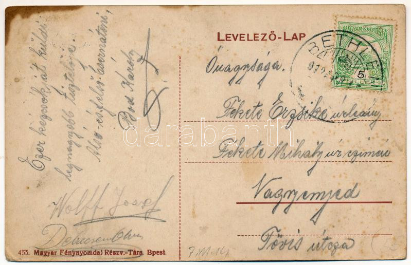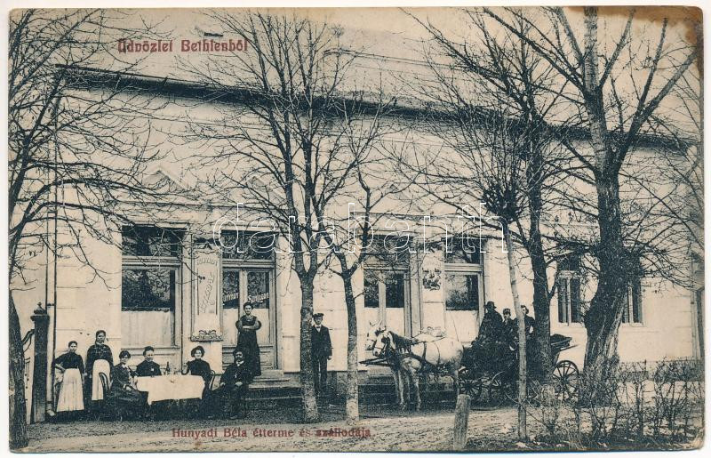 1912 Bethlen, Beclean; Hunyadi Béla étterme és szállodája / hotel and ... https://www.darabanth.com/hu/451-Gyorsarveres/451.0/Kepeslapok/Erdely~2000005/1912-Bethlen-Beclean-Hunyadi-Bela-etterme-es-szallodaja-hotel-and-restaurant-r~II2998658