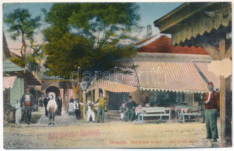 Orsova, Ada Kaleh török sziget, Török bazár és kávézó. Vasúti levelezőlapárusítás 6. sz. 1918. / Bazarul / Ada Kaleh-Insel / Turkish island, bazaar and café (ragasztónyom / glue marks)