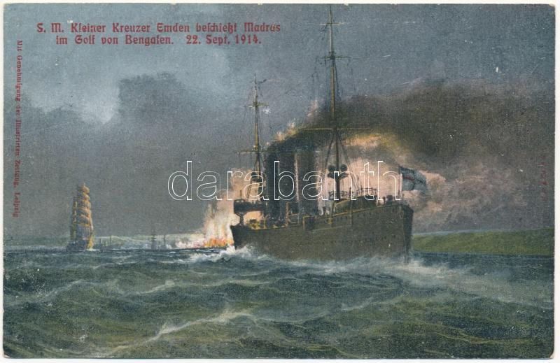 1914 SMS Emden kleiner Kreuzer der deutschen Kaiserlichen Marine, beschießt Madras im Golf von Bengalen / WWI SMS Emden Dresden class light cruiser of the Imperial German Navy, the bombardment of Madras
