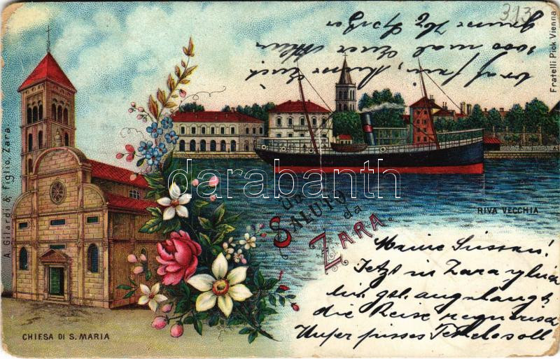1902 Zadar, Zara; Chiesa di S. Maria, Riva Vecchia. A. Girardi & f... https://www.darabanth.com/hu/451-Gyorsarveres/451.0/Kepeslapok/Horvatorszag~2000008/1902-Zadar-Zara-Chiesa-di-S-Maria-Riva-Vecchia-A-Girardi-figlio-Art-Nouveau-floral-litho-~II3002049