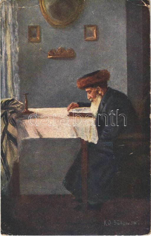 Leírás: Szombati elmélkedés / Sabbatlektüre / Lektura szabasowa / Judaica art postcard. F.H. & S. W. IX. Nr. 463. s: K. O. Belawski (EB)