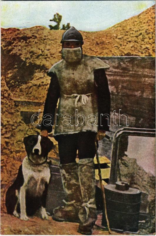 Französischer Offizier in seiner der modernen Kriegsführung angemessenen Schutzuniform gegen Gasangriff und Nässe des Schützengrabes / WWI French military officer in his protective uniform suitable for modern warfare against gas attack and moisture in the trench
