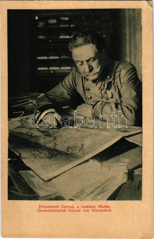 Hötzendorfi Conrad, a vezérkar főnöke. A Képes Újság felvételei. Lysoform fertőtlenítőszer reklámja / Generalstabschef Conrad von Hötzendorf / WWI Franz Conrad von Hötzendorf, Field Marshal and Chief of the General Staff of the Austro-Hungarian K.u.K. Army. "Lysoform" disinfectant advertisement (szakadás / tear)