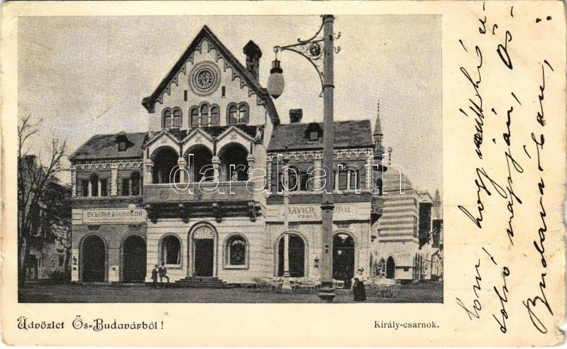 Leírás: 1899 (Vorläufer) Budapest XIV. Ősbudavár, Ős-Budavár, Király csarnok, Telefon hírmondó, Baver Samu cukrászata (b)