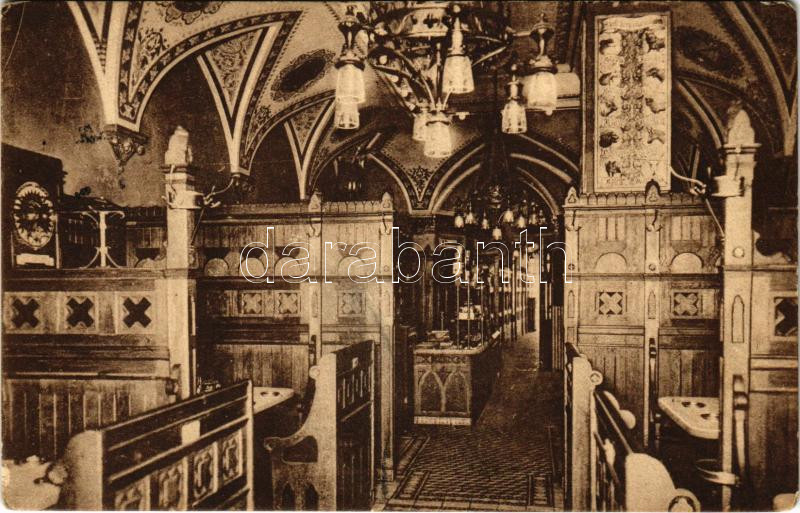 Leírás: 1916 Budapest V. Förster János sörözője az "Apostolokhoz", fülkék az Apostoloknál, belső. Kígyó utca 6. (fa)