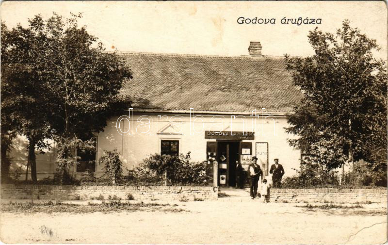 1940 Dunaszentgyörgy, Godova Andor üzlete (r) https://www.darabanth.com/hu/451-Gyorsarveres/451.0/Kepeslapok/Magyarorszag~2000004/1940-Dunaszentgyorgy-Godova-Andor-uzlete-r~II2999354
