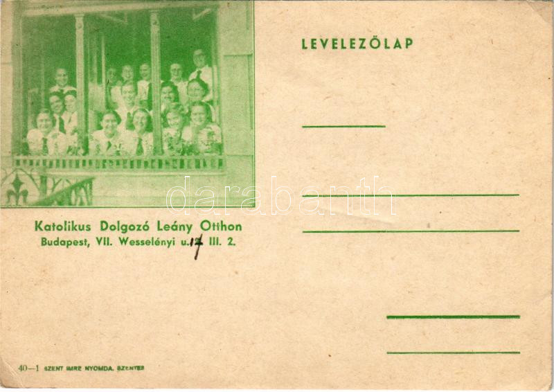 Budapest VII. Katolikus Dolgozó Leányotthon. Wesselényi utca (EK) https://www.darabanth.com/hu/451-Gyorsarveres/451.0/Kepeslapok/Magyarorszag~2000004/Budapest-VII-Katolikus-Dolgozo-Leanyotthon-Wesselenyi-utca-EK~II3001985
