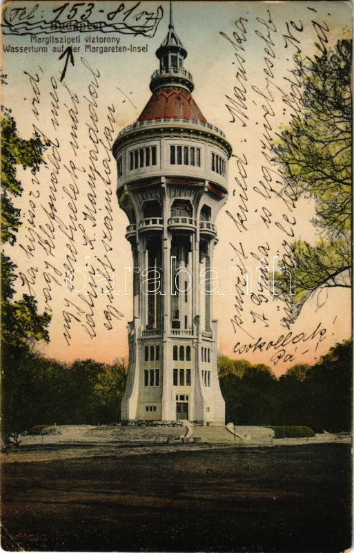 Leírás: Budapest XIII. Margitszigeti víztorony. "Taussig" 92. (EK)