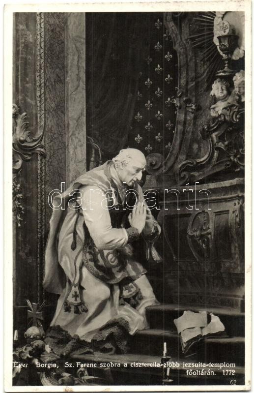 Eger, Borgia, Szent Ferenc szobra a cisztercita (előbb jezsuita) templ... https://www.darabanth.com/hu/451-Gyorsarveres/451.0/Kepeslapok/Magyarorszag~2000004/Eger-Borgia-Szent-Ferenc-szobra-a-cisztercita-elobb-jezsuita-templom-fooltaran-belso~II1658059