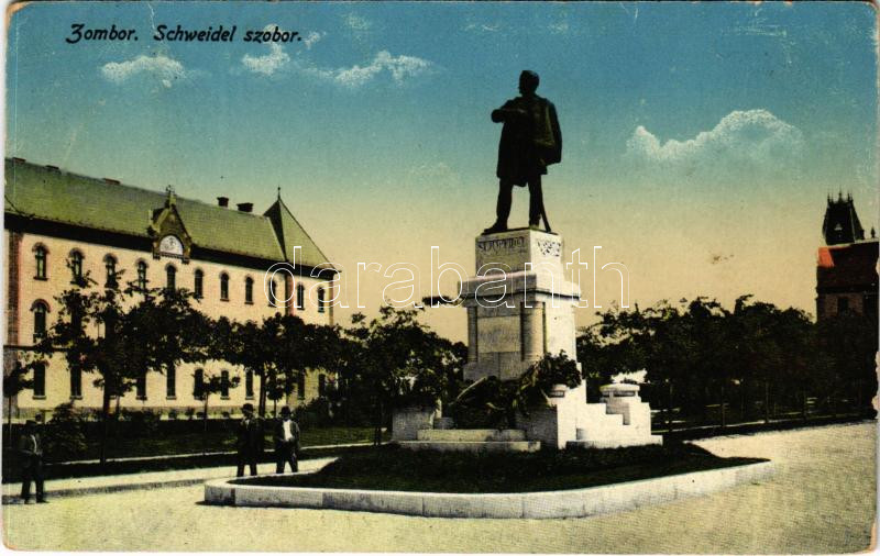 1915 Zombor, Sombor; Schweidel szobor. Kaufmann Emil kiadása / statue,... https://www.darabanth.com/hu/451-Gyorsarveres/451.0/Kepeslapok/Vajdasag~2000009/1915-Zombor-Sombor-Schweidel-szobor-Kaufmann-Emil-kiadasa-statue-monument-EK~II2939909