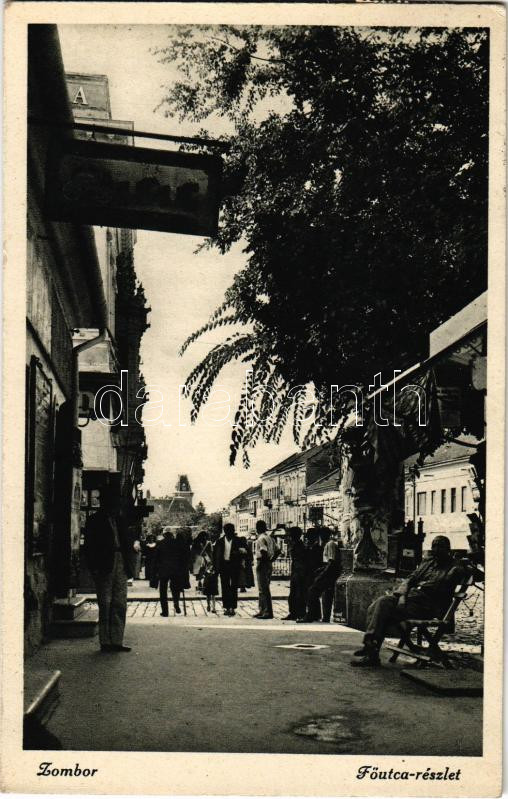 1941 Zombor, Sombor; Fő utca részlet, üzletek / main street, shops https://www.darabanth.com/hu/451-Gyorsarveres/451.0/Kepeslapok/Vajdasag~2000009/1941-Zombor-Sombor-Fo-utca-reszlet-uzletek-main-street-shops~II3001906