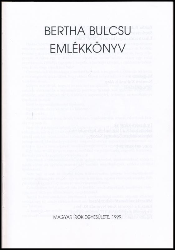 Bertha Bulcsu Emlékkönyv. Szerk.: D. Nagy Imre. Bp., 1999, Magyar Írók Egyesülete. Kiadói kartonált papírkötés. + Kiadói levél, Fülöp Zsuzsanna aláírással, 2 kézzel írt oldal