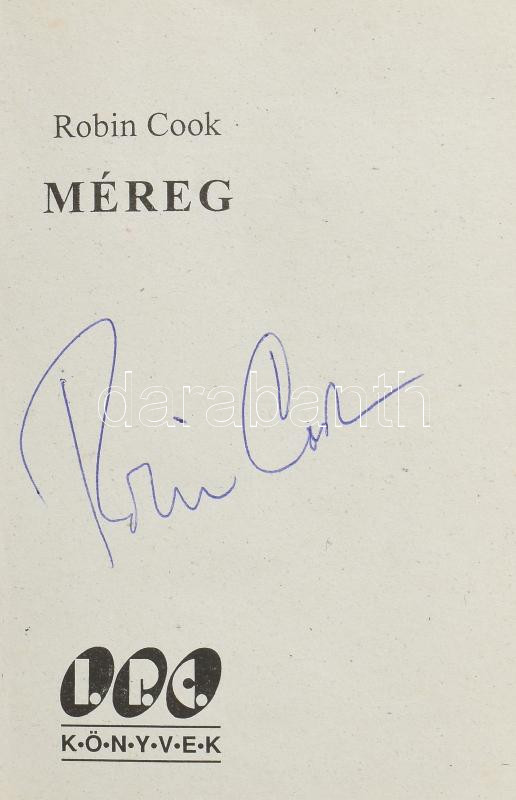 Cook, Robin: Méreg. DEDIKÁLT! 1998, IPC Könyvek. Kiadói papírkötés, jó... https://www.darabanth.com/hu/451-Gyorsarveres/451.0/Konyvek/Konyvek-Egyeb-ritkasagok~1000029/Cook-Robin-Mereg-DEDIKALT-1998-IPC-Konyvek-Kiadoi-papirkotes-jo-allapotban~II3003686