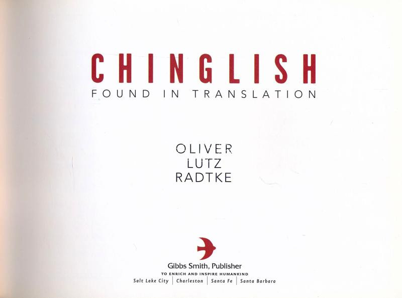 Oliver Lutz Radtke: Chinglish. Found in Translation. (Humoros kínai-angol fordítások gyűjteménye). Layton, 2007, Gibbs Smith Publisher. Színes fotókkal illusztrálva. Angol nyelven. Kiadói papírkötés.