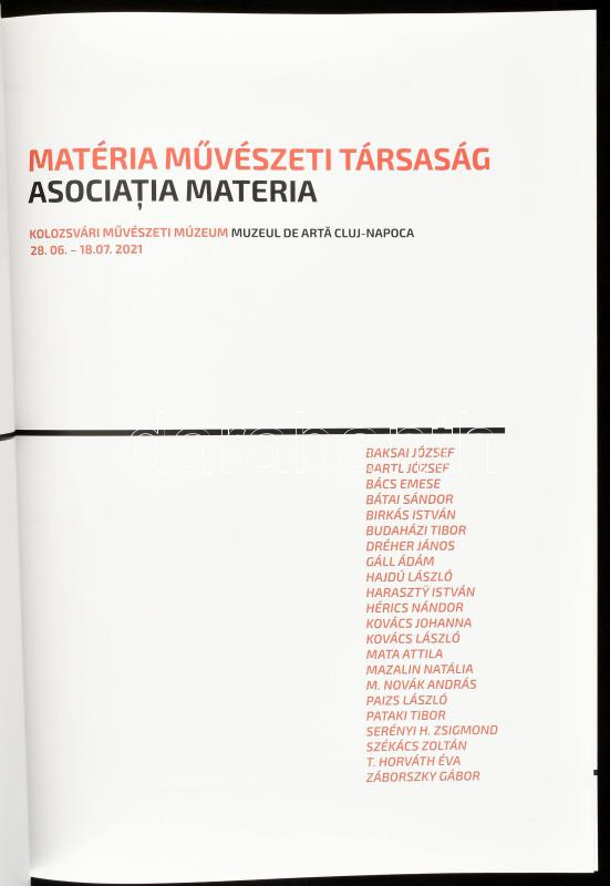 2021 Matéria Művészeti Társaság. Asociatia Materia. Kolozsvár, 2021, Kolozsvári Művészeti Múzeum / Muzeul de Arta Clju - Napoca. Magyar és román nyelven. Gazdag képanyaggal illusztrált. Benne Bartl József, Haraszty István, Záborszky Gábor és mások. Kiadói papírkötés. +2018 Anyag és szellem. Matéria Művészeti Társaság 10 éves jubileumi kiállítása. Kaposvár, Vaszary Képtár. Kaposvár, 2018., Pro Cultura Somogyiensi Egyesület. Gazdag képanyaggal illusztrált. Kiadói papírkötés.