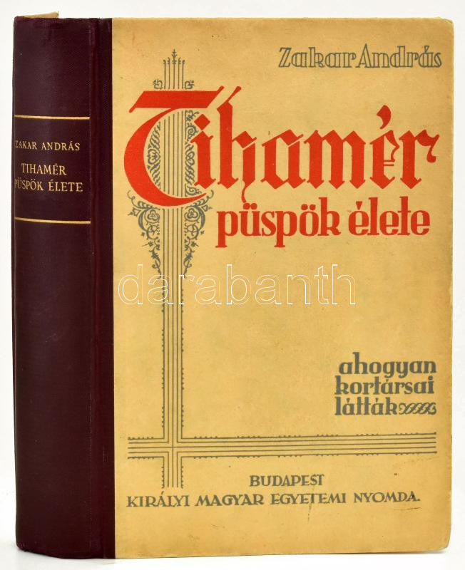 Zakar András: Tihamér püspök élete ahogyan kortársai látták. Bp., 1941, Kir. M. Egyetemi Nyomda. Fekete-fehér fotókkal illusztrált. Kiadói félvászon-kötés, kissé kopott borítóval.