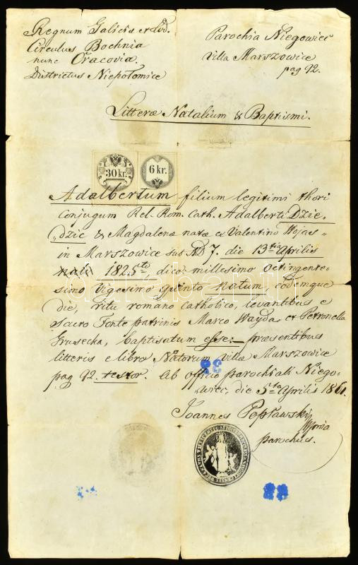 1861-1867 Vegyes okmány tétel, benne egy keresztlevél 30 kr. és 6 kr o... https://www.darabanth.com/hu/451-Gyorsarveres/451.0/Magyar-filatelia-es-postatortenet/Okmanybelyegek~500021/1861-1867-Vegyes-okmany-tetel-benne-egy-keresztlevel-30-kr-es-6-kr-okmanybelyeggel-es-egy-n~II3004085