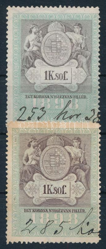 Leírás: 1898 1,80K okmánybélyeg két klf árnyalatban