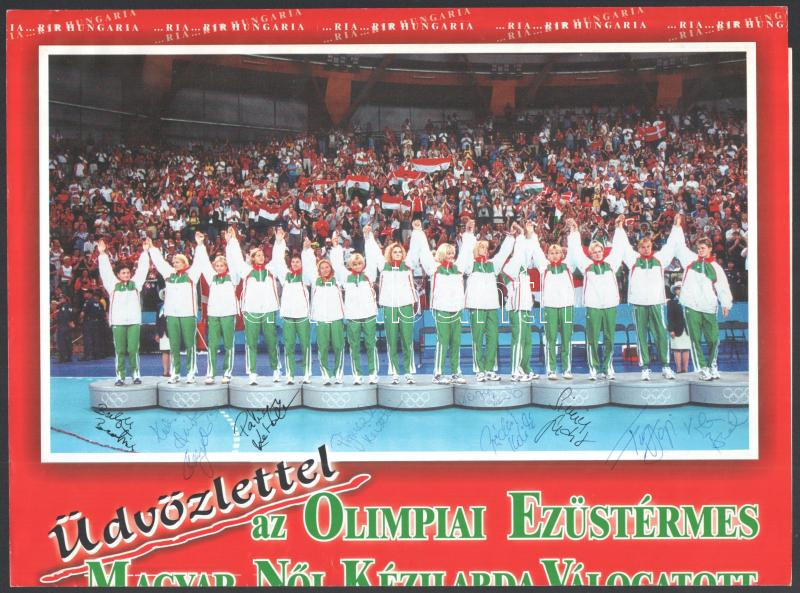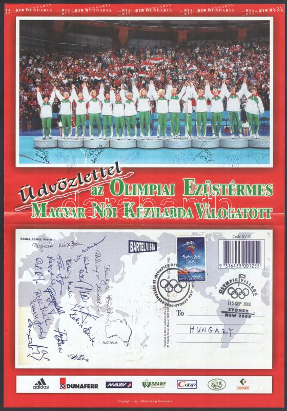 Leírás: 2000 az olimpia ezüstérmes magyar kézilabda csapat tagjai által aláírt plakát 29x44 cm
