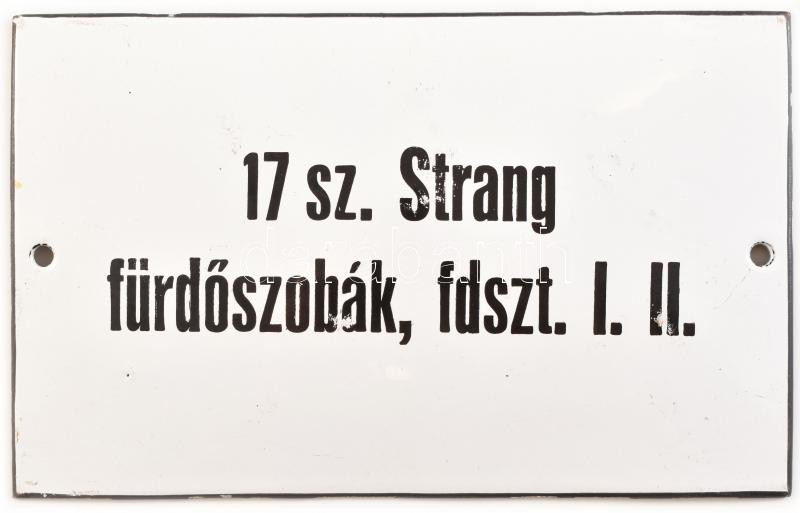 17 sz. Strang, fürdőszobák, fdszt. I. II. feliratos zománcozott fém tá... https://www.darabanth.com/hu/451-Gyorsarveres/451.0/Mutargy-papirregiseg-egyeb/Bolhapiac~500016/17-sz-Strang-furdoszobak-fdszt-I-II-feliratos-zomancozott-fem-tabla-kis-kopasnyomokkal~II2996765