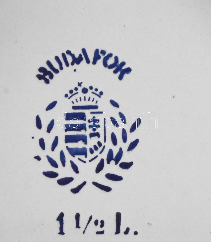 Leírás: Bonyhádi zománc csöpögtető edény. Régi magyar címeres. szép állapotban 21 cm