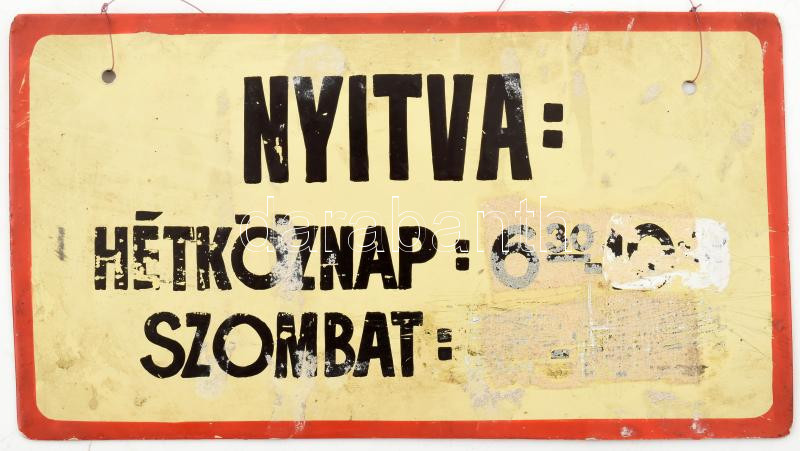 Nyitva / zárva, régi festett fém tábla, kisebb hibákkal, 18x10 cm https://www.darabanth.com/hu/451-Gyorsarveres/451.0/Mutargy-papirregiseg-egyeb/Bolhapiac~500016/Nyitva-zarva-regi-festett-fem-tabla-kisebb-hibakkal-18x10-cm~II2996985