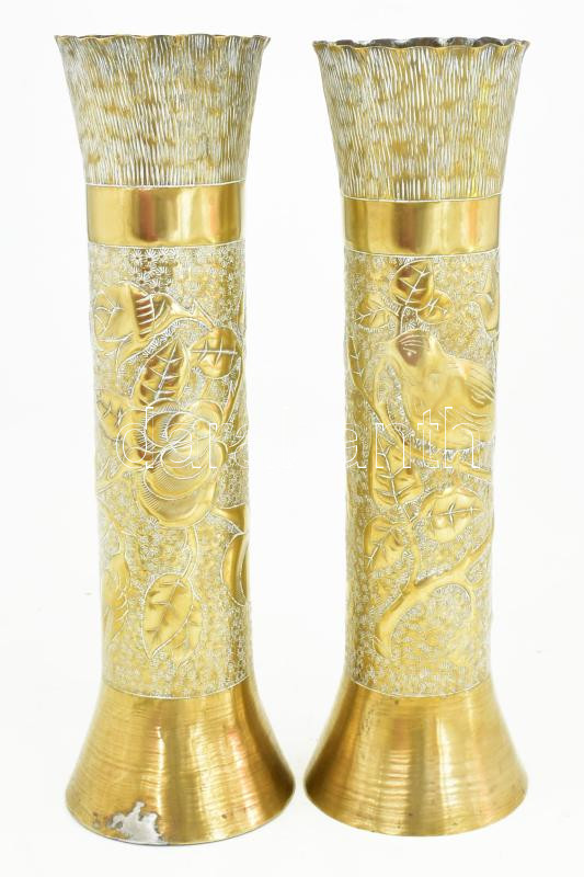 Leírás: Trébelt iparművész réz váza pár, jelzés nélkül, kopással, m: 25 cm