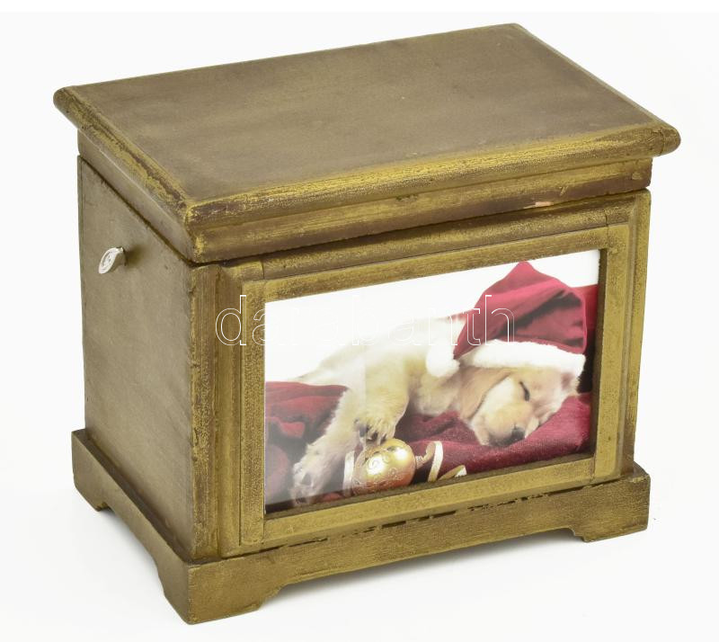 Zenélő doboz, festett fa, sérült, 20x17x13 cm