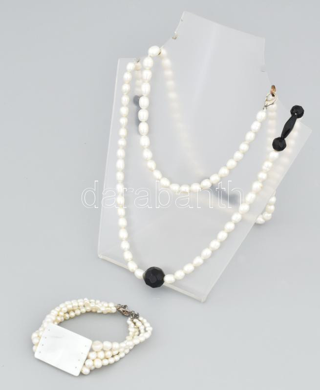 Leírás: Gyöngy nyaklánc üveg dísszel 110 cm + karkötő. Édesvízi tenyésztett gyöngy
