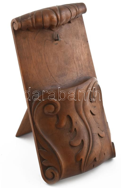 Leírás: Klasszikus stílusú faragott fa kulcstartó, támasztós, kopással, m: 26 cm