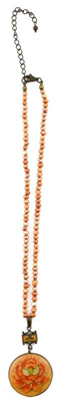 Leírás: Színes tenyésztett gyöngy nyaklánc, virágos kerek medállal