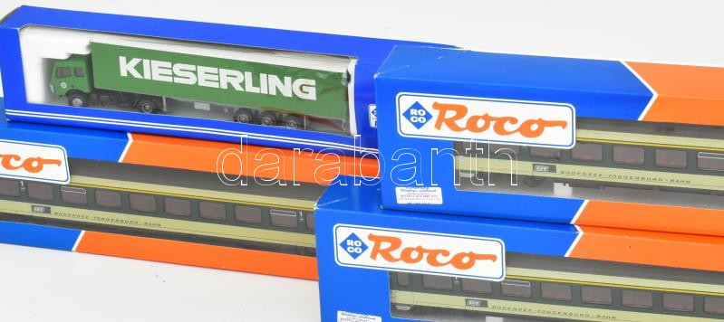 Leírás: 5 doboz, összesen 7 db Roco vasút modell, vasúti kocsi szerelvény erdeti dobozában, újszerű állapotban