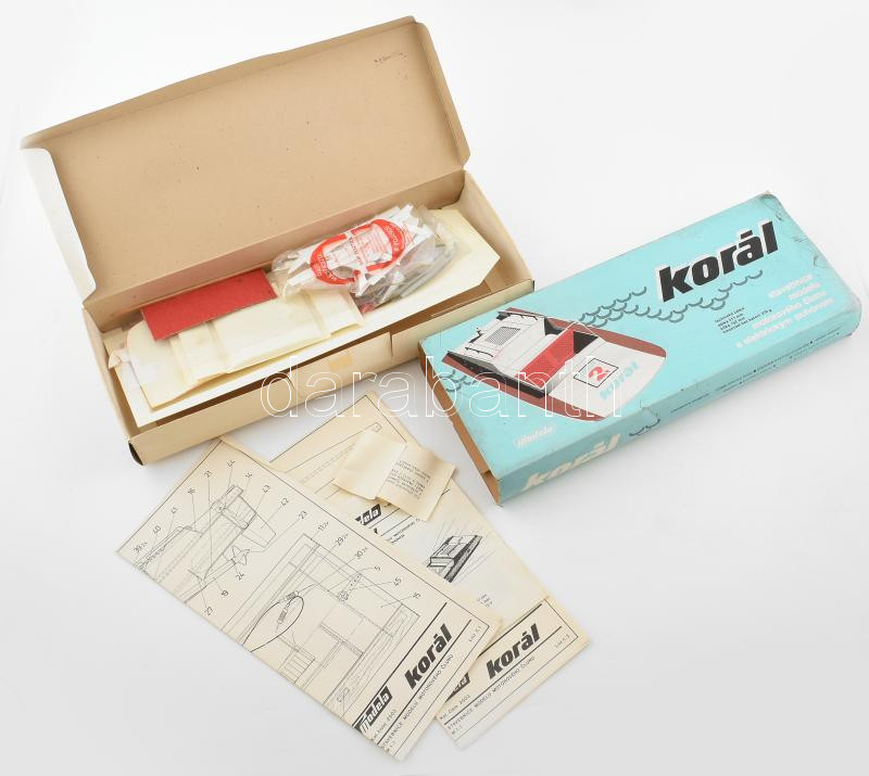 Vintage csehszlovák motorcsónak makett, összeállítható retro műanyag modell, részben újszerű állapotban, 1975 körül, eredeti kissé sérült kartondobozában, h: 43 cm / cca 1975 Vintage Czechoslovakian Ta mock up model, plastic, in original, slightly damaged cardboard case, length: 43 cm