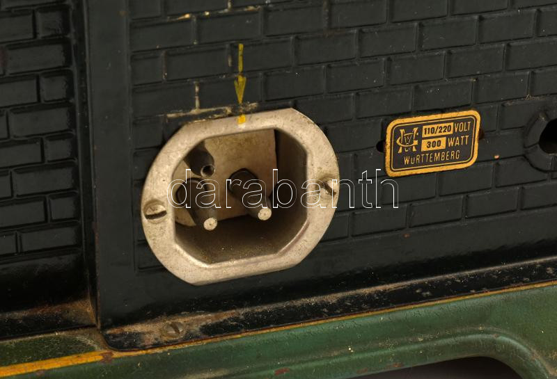 Leírás: Württemberg antik gőzgép, elektromos, horpadással, kopással, jelzéssel, 27x28x36 cm