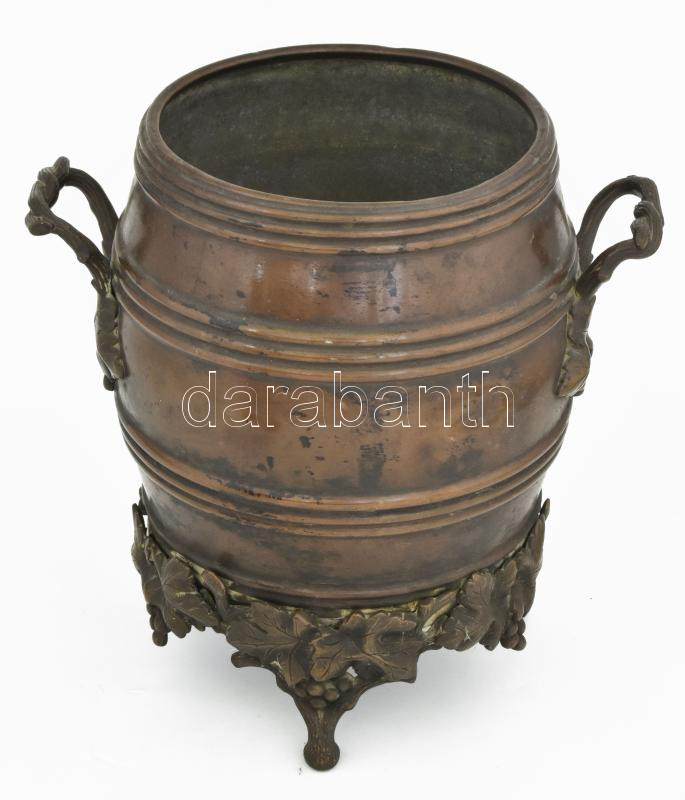 Leírás: Antik bronz szőlőkínáló hordó, egyik eleme levált, de megvan, kopással, m: 27 cm